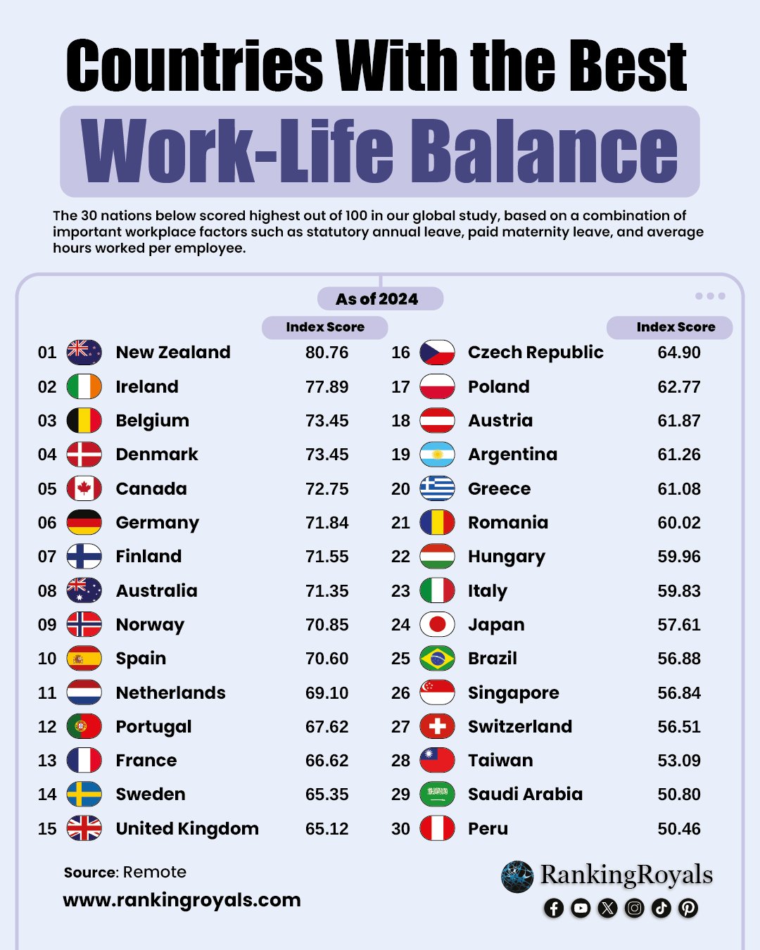 RankingRoyals Countries with the Best Work Life Balance (2024