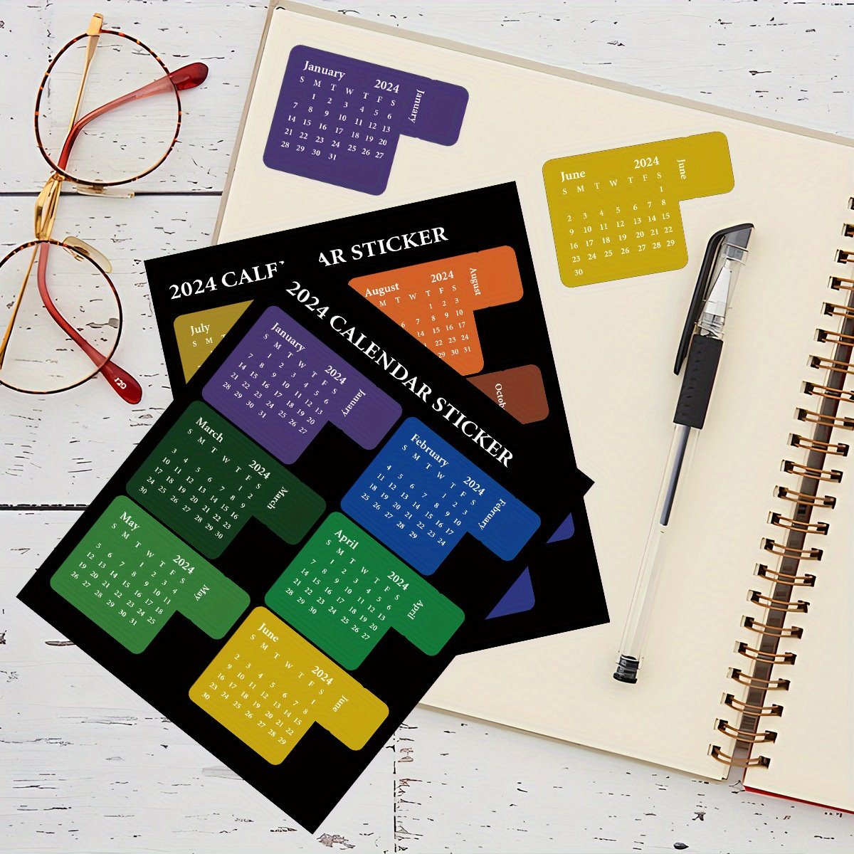 2024 12months] Waterproof Paper Calendar Index Label Sticker Temu